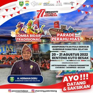 Bersiaplah! Dalam rangka memperingati Hari Kemerdekaan Republik Indonesia Ke-77 Tahun. Lomba Bidar Tradisional dan Lomba Parade Motor Hias kembali digelar! Memperebutkan Piala Bergilir Gubernur Sumataera Selatan, Lomba tahun ini akan lebih meriah karena diikuti oleh perserta dari tingkat Kecamatan, OPD, BUMN, BUMD, Instansi hingga Kabupaten/Kota Se- Sumatera Selatan. Selain itu event ini turut dimeriahkan oleh: […]